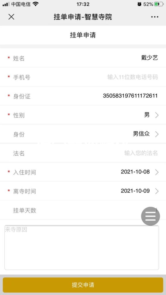 行腳師父可以通過(guò)網(wǎng)上查看寺院智慧寺院系統(tǒng),在寺院的功能板塊點(diǎn)擊掛單申請(qǐng)功能系統(tǒng)版塊,提前查看寺院的住宿情況,這樣大大為行腳師父知悉寺是否住宿額滿(mǎn)提供了方便之處。